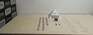 Na quarta-feira (11), militares da 38ª Cia realizavam operação incursão no bairro Vila Renascer e abordaram um cidadão (19 anos), com o qual apreenderam 01 porção, 02 buchas de maconha, 100 pedras de crack e 180 pinos de cocaína.