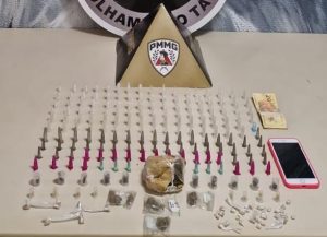 No sábado (11), policiais militares da 25ª Cia Tático Móvel realizaram operação incursão no bairro Vila Francisco Mariano e abordaram um adolescente, com o qual apreenderam 164 pinos de cocaína, 40 pedras de crack, 04 buchas de maconha, 01 porção de maconha, R$ 82,00 (oitenta e dois reais) em dinheiro e 01 aparelho celular
