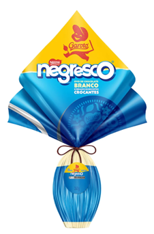 Peso: 227g Disponibilidade: linha fixa Observação: Os valores podem variar conforme região, canal de venda e política comercial das lojas. Negresco O Ovo de Páscoa Garoto® Negresco® Chocolate Branco (240g) combina chocolate branco com pedaços crocantes do biscoito Negresco®, apostando no contraste entre cremosidade e textura marcante. A proposta amplia o portfólio da marca com uma opção voltada a quem busca sabores mais intensos e diferenciados na data. Preço sugerido: A partir de R$59,99 Peso: 240g Disponibilidade: linha fixa Observação: Os valores podem variar conforme região, canal de venda e política comercial das lojas. Caribe O Ovo de Páscoa Garoto® Caribe® Ao Leite com Flocos de Banana (229g) leva para a versão sazonal a combinação que consagrou a marca: chocolate ao leite com notas tropicais e crocância de banana. A proposta reforça o apelo nostálgico do sabor Caribe®, posicionando-se como alternativa para quem busca fugir do óbvio na Páscoa sem renunciar a um clássico do portfólio. Preço sugerido: A partir de R$59,99 Peso: 229g Disponibilidade: linha fixa Observação: Os valores podem variar conforme região, canal de venda e política comercial das lojas.